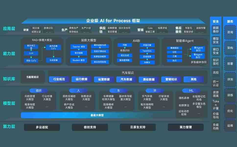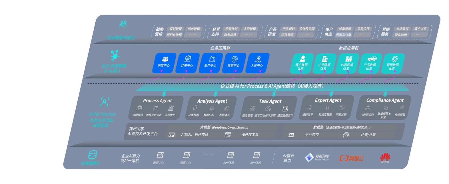 壹号平台问学智车解决方案是一套基于AI技术的汽车行业智能化系统,,,覆盖从底层算力到顶层AI应用的全栈方案。。方案由算力层、、模型层和应用层组成:算力层,,,方案支持多种一体机配置,,,,具备云端灵活部署、、、、多云适配以及动态优化计算资源的能力;模型层,,,壹号平台问学平台版提供了企业级AI应用一站式构建与管理平台,,,支持基于后训练强化技术的汽车企业专属模型的训练、、评测和运营;应用层,,壹号平台问学DeepSeek版提供包括超级员工、、、智能招采、、、智能营销、、智能客服、、AI for BI等一系列解决方案,,,,可助力汽车行业实现数字化转型,,,让管理更智能、、、响应更敏捷。。。