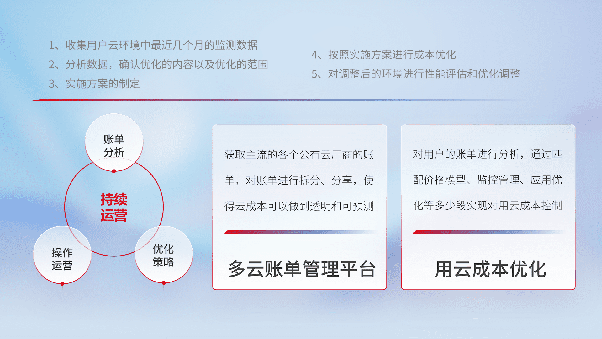 监控业务系统资源开销,,对资源的消耗精确计量,,实现费用的透明化管理,,,,不断提升资源使用率,,,调整资源购买方式,,,降低资源费用成本,,,,用云成本可预测、、、用云费用可优化,,,,云资源配额有据可依。。